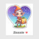 Adesivo de desenho animado Chibi de fada de Natal fofo segurando um presente na neve.