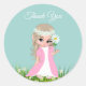Linda Fada e flores em fundo azul claro Obrigada. O texto pode ser personalizado.