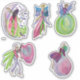 Cinco fadas brilhantes e modernas brincando com bolhas igualmente vibrantes
