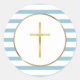 Adesivo simples com faixa azul e uma cruz dourada com uma borda elegante em folha de ouro falsa. Perfeito para qualquer ocasião religiosa cristã. Criado por Thisisnotme©