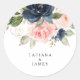 Estas selas florais de envelopes florais são perfeitas para um casamento tropical. O design retrata uma pincelada rosa desenhada à mão, azul escuro e flores brancas marinhos, inspiradoras elegância, classe e beleza natural. Personalize as etiquetas com os nomes da noiva e do noivo.