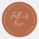 Projetado para combinar com nossa Coleção Botânica Russa. Adicione um toque elegante aos seus convites de chá de panela com este selo de envelope. O texto diz " apaixonar-se + o nome da noiva chá de panela + você está cordialmente convidado"