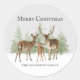 Um adesivo de "Feliz Natal" com uma bela família de veados num dia de inverno de neve.
