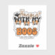 Adicione um toque festivo a laptop, notebooks ou favoritos para festas com este adesivo de Halloween "Hangin' With My Boos". Apresentando ilustrações fantasmas bonitas e uma fonte divertida de Halloween, ela é perfeita para mães, famílias ou professores. Personalize com nomes para um toque exclusivo.