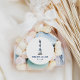 Um tipo de farol desenhado em um tema de cor azul e branca. Os nomes dos casais e a data estão abaixo. Esta é uma boa adição para enviar convites, cartões de Rsvp, e até adicioná-los aos favores do casamento.