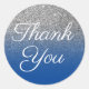 Foto de cintilação prateada e febre azul profunda com uma mensagem de texto personalizável "obrigado você" em um estilo bonito de caligrafia. Etiquetas azuis e prateadas. Design de fotografia de uma quinceañera, casamento ou outro evento especial. Design de brilho.