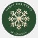 This elegant custom Faux Gold Snowflake Green Custom Holiday sticker features a beautiful watercolor snowflake on a forest green background, with the message "Merry Christmas" in an elegant serif font, and the line for your family name in a beautiful script font. Perfect for adding a festive and personal touch to holiday gifts. Ideal for Christmas gift wrapping and personalized presents, this design combines simplicity and sophistication.
