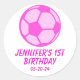 Desenho de bola de futebol rosa. Os primeiros adesivos de Aniversário da moça. Editar nome e data para personalizar.