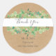 Com delicadas folhas de eucalipto em aquarela, este adesivo redondo clássico de agradecimento de casamento botânico chic pode ser personalizado com as informações do seu dia especial de casamento. Concebido por Thisisnotme