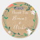 Etiqueta de agradecimento de casamento com guirlanda floral country rústica, adesivo redondo clássico com uma guirlanda floral moderna de flores da primavera sobre um fundo kraft rústico, este adesivo de casamento botânico chic pode ser personalizado com seus nomes. Concebido por Thisisnotme