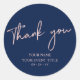 Este adesivo de agradecimento personalizado simples irá adicionar um detalhe elegante à sua festa de aniversário. Este design apresenta letras modernas em rosa dourado com pinceladas e texto personalizado "Obrigado". Convites de aniversário e suprimentos para festa correspondentes estão disponíveis na minha loja BaraBomDesign.