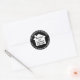 Celebre sua nova casa com estilo com estes adesivos personalizados para lembrancinhas / selos de envelope. Todo o texto é simples de personalizar. O design preto e branco apresenta uma silhueta de casa minimalista moderna e elegante, uma citação inspiradora de amizade em um círculo, e o(s) nome(s) em tipografia cursiva personalizada no centro. O design moderno e elegante dá um toque final sofisticado aos seus convites de festa de inauguração, lembrancinhas ou cartões de agradecimento. A citação diz: "Os ornamentos da nossa casa serão os convidados que a frequentam."