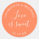 Adesivo redondo clássico Favor de casamento amor é doce. Projetado por Thisisnotme©