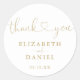 Adesivo de agradecimento com letra de coração dourado elegante personalizado com seus nomes e data especial. Criado por Thisisnotme©