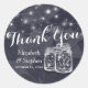Favor do Casamento Obrigado Modelo do Sticker - Mason Jars Elegante e Luzes de Cordas no Fundo do Floral Azul Marinho. Um Design perfeito para o seu grande dia. Todo estilo de texto, cores, tamanhos podem ser modificados para ajustado das suas necessidades!