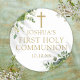 Este adesivo de comunhão solene com folhagem de eucalipto botânico elegante pode ser personalizado com suas informações em tipografia chic. Criado por Thisisnotme©