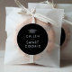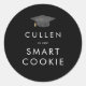 Este adesivo de gratificação inteligente de biscoito preto-escuro e chic boné é perfeito para uma festa de formando moderna. O simples design escuro apresenta uma tipografia clássica, sofisticada, em preto e branco, com um chapéu de graduação em branco e dourado. Personalize o adesivo do seu favor com o nome do formando.