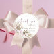 Adesivos para seus favores em um design Boho de palmas secas com orquídeas rosa fresco. O círculo envolve a caligrafia obrigado e seu nome/evento e data personalizados. Neutros com um toque rosa pálido.