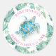 Adicione um toque tropical fofo ao seu chá de bebê com meu selo chique de ilha. Estes adesivos de 1,5" apresentam minha tartaruga marinha original em aquarela, cercada por folhas de palmeira monstera tropicais em tons de azul, turquesa e verde. Personalize com os nomes e data do chá. Edite as palavras para ler Obrigado e use como adesivos de favor. Para ver papelaria correspondente, visite www.zazzle.com/dotellabelle