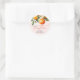 O adesivo do Chá de fraldas de favorito da Clementina Laranja Pequena apresenta um belo buquê de laranjas aquáticas e flores junto com o elegante tipo de caligrafia.