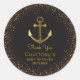 Elegante, chá de fraldas náutico favorece autocolantes em cores pretas e douradas- Lê 'Obrigado' em ouro elegante, letras de script. Nome da mãe personalizada e "Chá de fraldas" em letras de ouro elegantes, correspondentes à data abaixo. Uma âncora de ouro metálico falso enfeita o topo. Fundo negro de carvão com bordas falsas de ouro brilhante. Festivo, sofisticado partido de chá de fraldas náutico favorece autocolantes. Temos outros suprimentos de decoração de chás de fraldas e chás de fraldas em nosso compro Zazzle.com/angela65. Clique na opção Personalizar para alterar as cores do texto, o tamanho e os estilos de fonte.