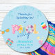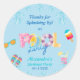 Personalize este Legal Partido da Piscina Azul Obrigado Sticker e adicione um toque de abertura de abertura aos favoritos para festas da criança do seu precioso. Os chinelos coloridos, óculos de sol, convidando bebidas frias e deliciosos picolés, contra um fundo azul turquesa, são uma maneira perfeita de dizer obrigado a amigos e familiares para comparecer à festa de natação do seu Menino ou da sua Piscina.