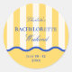 Celebre com estilo com este adesivo de fim de semana de despedida de solteira moderno, apresentando listras amarelas em negrito combinadas com sotaques azuis nítidos para um visual fresco e sofisticado. Concebido para uma festa de despedida de solteira chic em um destino de verão, este rótulo com vibração retrô é perfeito para um itinerário de fim de semana de garotas no Mediterrâneo repleto de brunch com Prosecco, dias ensolarados e momentos inesquecíveis à noite com as garotas. Inspirado no charme icônico de Positano e da Costa Amalfitana na Itália, este rótulo de lembrancinha de festa de despedida de solteira à beira-mar combina listras divertidas com um layout moderno e limpo - perfeito para definir o tom para um fim de semana sofisticado em um clube de praia ou uma celebração inspirada na Itália no