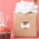 Um obrigado de festa de aniversário de disco retrógrado você prefere um adesivo de presente. Este design colorido do tema disco apresenta formas abstrato num fundo branco. Fácil de personalizar com o seu próprio anos 80, dança temática ou obrigado da discoteca retrorreflectora que você detalha.