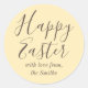 Celebre a Páscoa com estes autocolantes de férias! Um simples modelo com uma elegante letra de script e personalizado com seu nome de família. Estes autocolantes personalizados em forma redonda são uma adorável adição ao seu plástico de presentes, etiquetas, embalagens de biscoitos e doces, selos de envelopes e caçadas de ovos da Páscoa! Cores: amarelo pastel e marrom chocolate.
