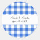 Damas de piquenique com padrão de gingham azul com favores de casamento com listras brancas perfeitas para um casamento com tema azul
