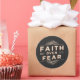 Fé sobre o Medo, este design cristão mostra um texto gráfico dizendo "Fé sobre o Medo".