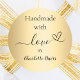 Um fundo de aparência dourada, texto preto. Personalize e adicione seu nome. Com o texto: Feita com amor, por + um pequeno coração.