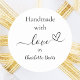 Um fundo branco na moda, texto preto. Personalize e adicione seu nome. Com o texto: Feita com amor, por + um pequeno coração.