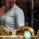 Personalize com seu nome ou nome comercial. O texto editável lê "Made with Love". Perfeito para produtos de panificação caseira ou para a embalagem da sua padaria. Coração com borda dupla.