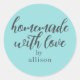 Adesivo personalizado rústico e moderno feito à mão com amor apresenta caligrafia estilosa e manuscrita em um fundo azul turquesa. Perfeito para todos os seus presentes caseiros! Basta adicionar seu nome ao rótulo. Exclusivamente projetado para você pelo Happy Dolphin Studio!