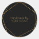 Termine e sele os pedidos dos seus clientes e mostre sua gratidão com esta elegante etiqueta "feito à mão por" com fundo preto e borda e texto geométricos com efeito dourado. Ótimo para usar como etiquetas de Natal para seus pedidos de inverno.