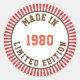 Data e borda vermelha e branca. Texto que diz "Feito em 1980, Edição Limitada" Data e cores podem ser alteradas para lhe servir.