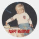 Vintage boy, roubando bolo de aniversário, representado neste doce adesivo.