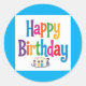 Adesivos redondos clássicos de Feliz Aniversário design cores imagem completa infantil com bolo