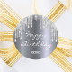 Uma moda e um aniversário glamouroso. Um metal prateado falso, com aspecto de folha de fundo decorado com pingos falso de brilho prateado, aparência de pingar tinta. Texto branco colorido: Parabéns é escrito com um moderno estilo escrito à mão. XOXO - abraços e beijos. Perfeito para embrulho de presente ou favores.