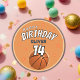Pau Clássico De Aniversário Feliz De Bola De Basquete. Um moderno e personalizado adesivo de celebração esportiva com uma bola de basquete, nome e idade. Você pode mudar qualquer texto nos adesivos.