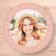 Este design simples e moderno é composto por tipografia de serifa e adiciona uma foto personalizada. Use este adesivo como uma etiqueta de presente para o presente para o celebrante de aniversário