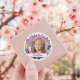 "Parabéns cor-de-rosa, flores e cardíacos personalizáveis" é perfeito para as mães celebrarem os aniversários das suas filhas. Este adesivo feminino apresenta uma mensagem rosa de "Parabéns Feliz" com um quadro feito de flores e corações. Você pode personalizar a foto e o nome, fazer perfeito para comemorar o aniversário de sua pequena princesa. Bonita, delicada e feminina, é um presente de aniversário ideal para filhas, netas e sobrinhas. Peguem este adesivo e façam sua princesa feliz!