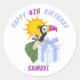 Personalize este bonitinho adesivo da festa de aniversário com o seu nome. O adesivo tem um tucano colorido, uma folha tropical, um grande sol, e um presente de aniversário junto com mensagens: Feliz Aniversário - onde você adiciona o ano e o nome.