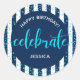 Feliz aniversário. Aqui está uma adição única ao seu fête de aniversário! "Celebrar" com este adesivo ousado, espantoso e moderno para um evento a lembrar. Roteiro de caligrafia e pontos sobrescrevem um fundo azul-marinho escuro e branco listrado. Personalize o texto personalizado com o nome do seu convidado de honra. Escolha entre uma forma redonda ou quadrada. Garantido para adicionar na moda diversão ao seu partido especial! A correspondência e coordenação de convites, guardanapos e outros doces de aniversário também estão disponíveis nesta moda e coleção especial. Basta digitar o nome da aniversariante e você pode personalizar facilmente este adesivo personalizado. Por favor, me mande mensagens com quaisquer perguntas ou solicitações.