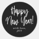 Coordenar com os meus cartões com fotos de Ano Novo - ou usar os autocolantes. A fonte desenhada à mão moderna que lê "Feliz ano novo" é uma imagem que pode ser redimensionada e movida se você mudar a forma do adesivo. O texto personalizado e o fundo de cores personalizados podem ser alterados usando as ferramentas de edição do Zazzle. Acessórios coordenadores estão disponíveis na minha loja.