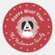Eleve os presentes de Natal com nossos adesivos redondos adoráveis com um cão charmoso em uma moldura de foto estilo vintage contra um fundo vermelho de Natal com uma nevasca caprichosa de pegadas brancas – nossa neve com um toque especial! Personalize o texto para adicionar um toque pessoal aos seus presentes e selos de envelope.
