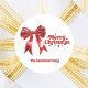 Um fundo branco, texto vermelho e arco. Feliz Natal é escrito com uma fonte de estilo retrô. Personalize e adicione um ano e seu nome de família.