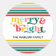 Feliz Colorida e Vinheta redonda clássica da família personalizada brilhante. Esticamentos coloridos num fundo branco com letra retrógrada. Feliz e Brilho. Feliz Natal e Feliz Natal, Frankie + Marlow!