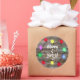 Feliz de madeira rustica e os adesivos das Luzes de Natal brilhantes dizem, "Feliz e Brilho" e fazem seladores de envelopes de natal excelente.